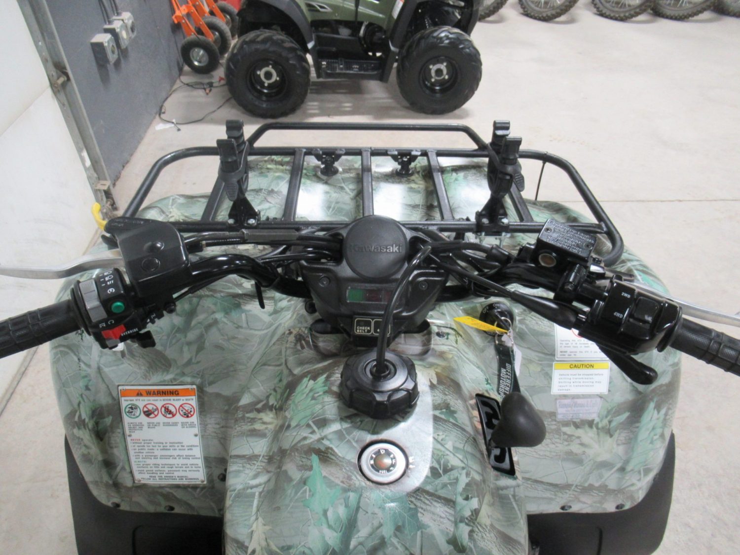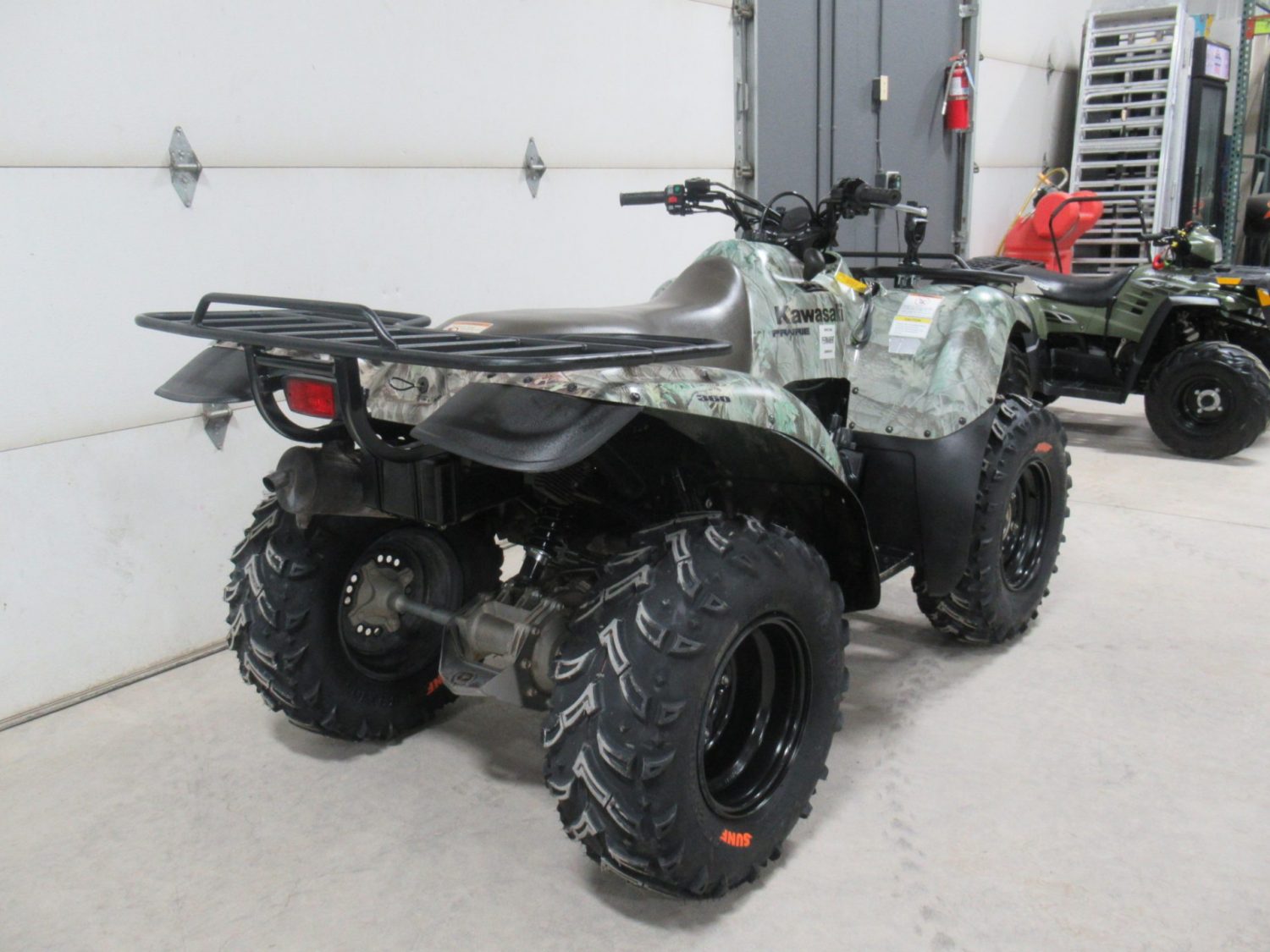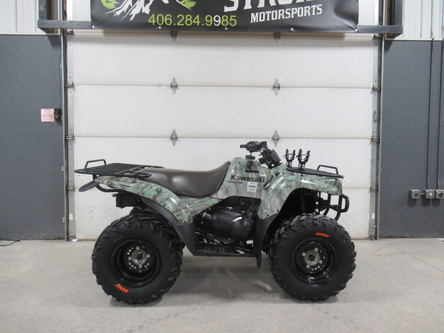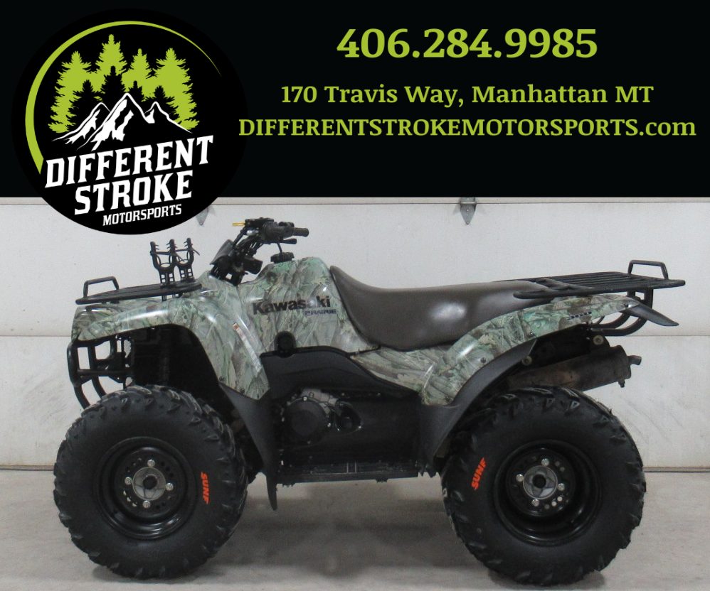 For Sale: 2008 Kawasaki Prairie 360 4×4. This machine is in excellent condition and has no odometer or hour meter. It has a 360cc, carbureted, 22hp, 4 stroke engine. The transmission is an automatic CVT with High/Low/Neutral/Reverse gears and selectable 2×4/4×4/Differential Lock modes. It does not have power steering. The rear suspension is a straight axle with a single shock. The 25″ SUNF Tires are brand new!