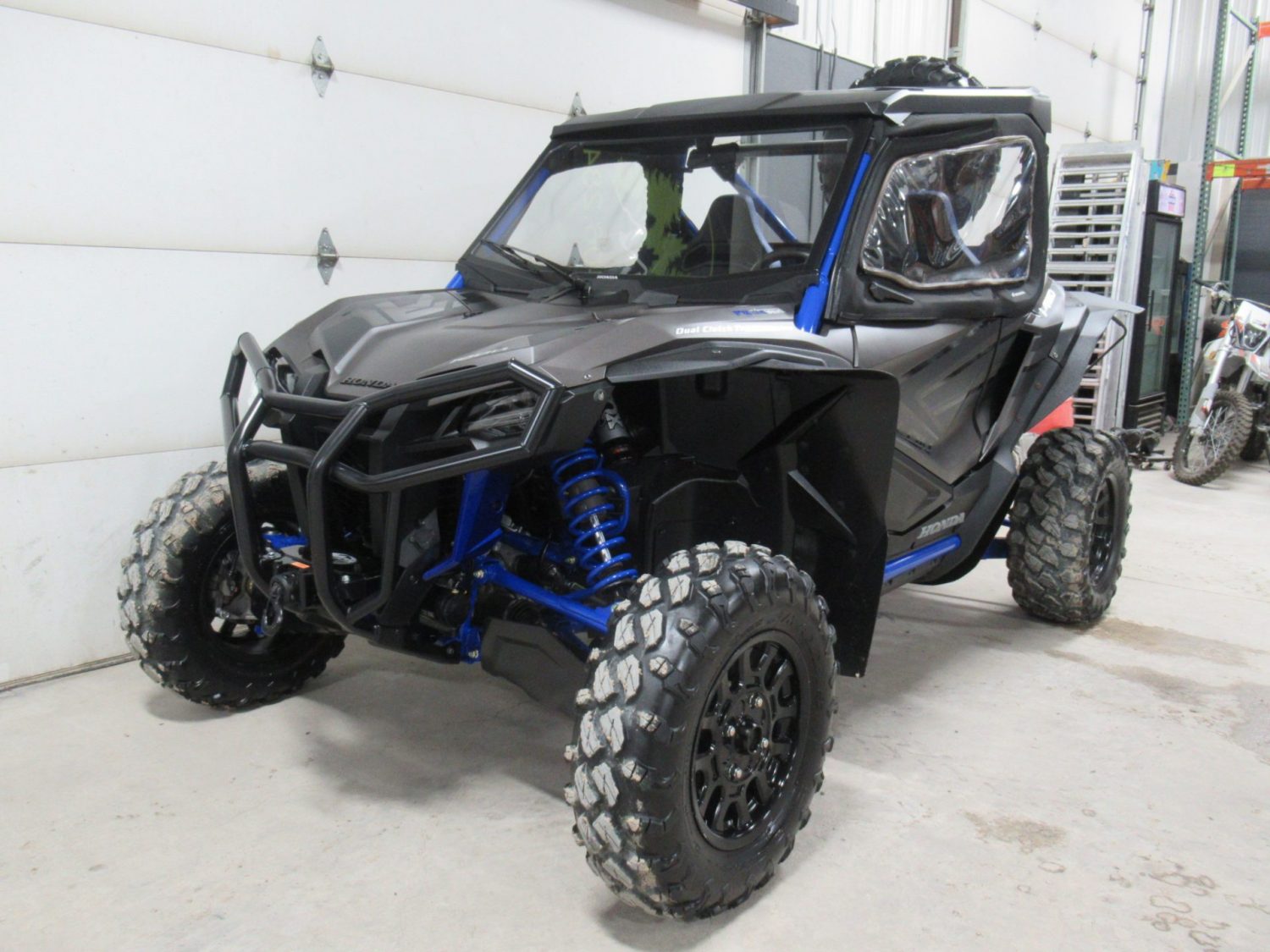 Accessories: Glass Windshield with Power Wiper/Washer, Honda Poly Rear Panel, Lower Door Inserts, Honda Soft Upper Doors, Inferno Heater, Heated Seats, Horn, Rearview Mirror, License Plate Bracket, Turn Signals (Street Legal), Front Bumper, KFI Stealth 3,500lb Winch with Synthetic Rope, Fender Flares, Rear Bumper & Bed Extender, Spare Wheel/Tire & Mount, Front A-Arm Guards.
