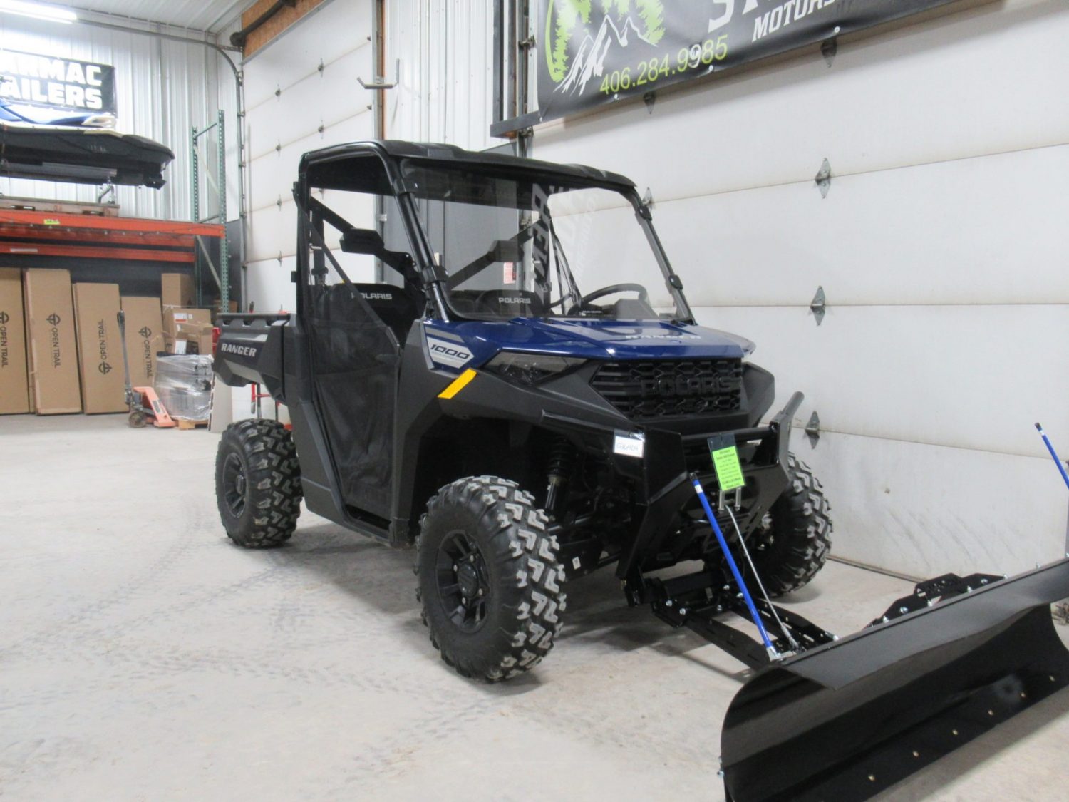 Accessories: Full Poly Windshield, Poly Roof, New 66″ Open Trail Steel Snowplow, KFI 3,500lb Winch.