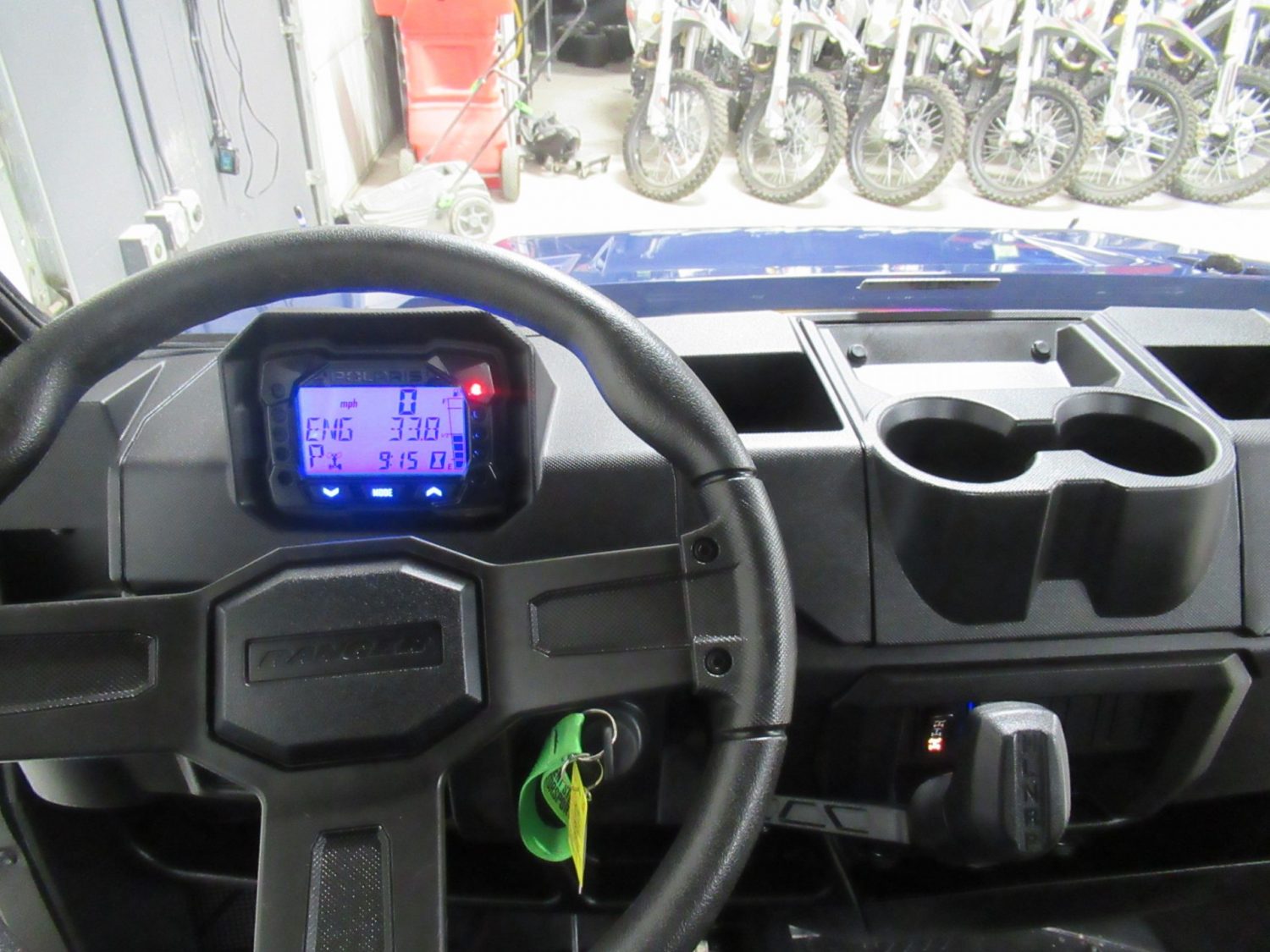 For Sale: 2023 Polaris Ranger 1000 Premium. This machine is in like new condition and has 97 miles (33.8 hours). It has a 1000cc, fuel injected, 61hp, twin cylinder engine. The transmission is an automatic CVT with High/Low/Neutral/Reverse/Park gears and selectable 1×4/2×4/4×4 modes. It has power steering and independent suspension. The original tires have about 90% tread left!