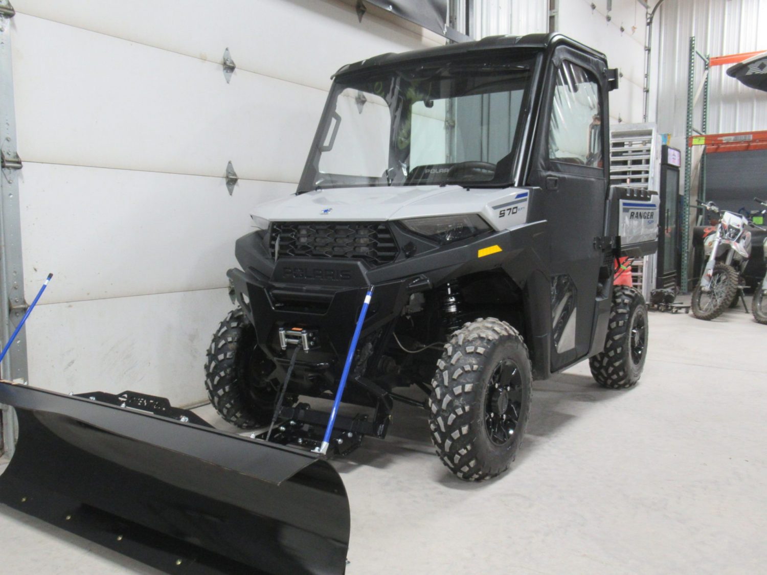 Accessories: New Polaris Heater with Defrost Vents, New Polaris Metal Framed Soft Doors, New 3,500lb KFI Assault Winch with Synthetic Rope, New 60″ Open Trail Steel Snowplow, Glass Windshield with Power Wiper/Washer, Glass Rear Window, Rear View Mirror, Poly Roof.